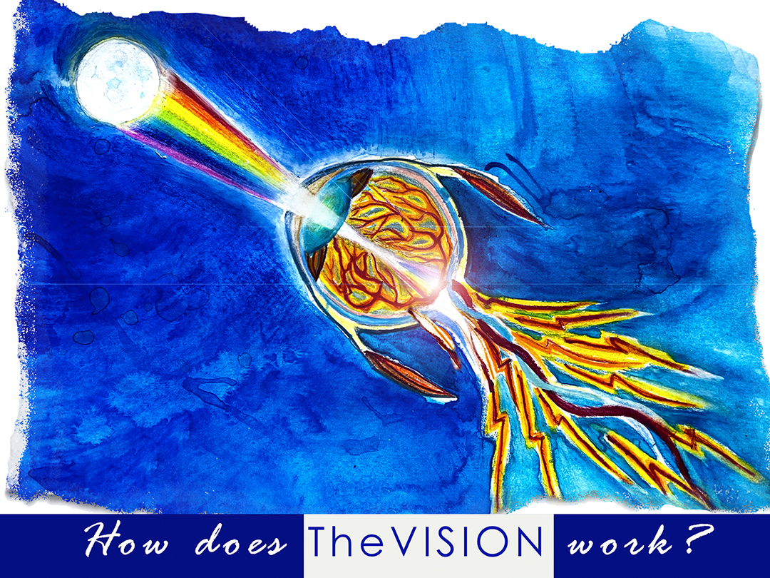 What my mind really sees comes from an electric impulse triggered by the light coming in through my eyes, the light comes in, hits the retina, igniting photoreceptors that turn the light into electrical signals. And so, the brain receives the electric impulse and projects the image…