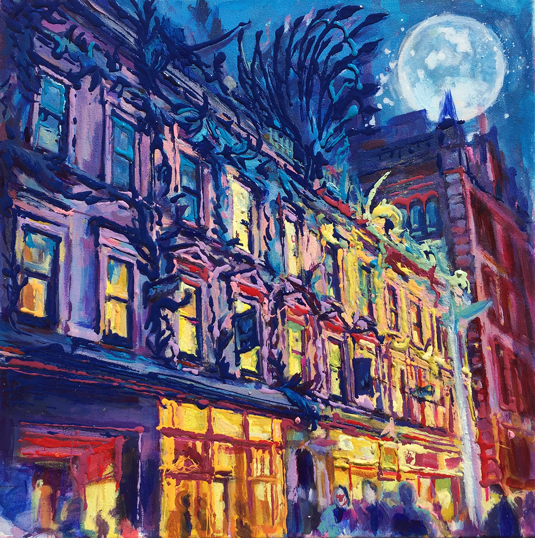 It’s almost as though my brain shouts ‘enough!’ as it tries to handle the brightness and intensity of the light piercing relentlessly through my retinas. My eyes may not be able to fully capture every contour or detail presented to it. At the same time, my eyes are not a Canon camera. They are not lifeless objects that can be manipulated by anyone to create the same image over and over again. My eyes – whether they are in focus or not – are part of my body, my conscious thought, they connect the world to the soul and often project to the world what I am feeling. They capture reality in countless ways and allow me to paint the Moon on my canvas in various shapes and positions. Almost like a model…