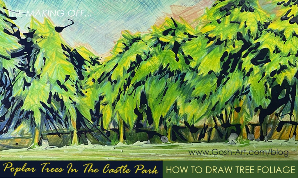 My latest drawing with these pencils is of rich green trees in Clitheroe Castle Park. In this post you can find out about the drawing techniques I used to create the leaves, grass, sky, shadow etc.