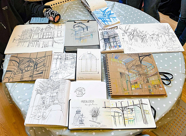 I had the opportunity to join the Ribble Urban Sketchers for the first time. We met at the Arcade in Accrington and it was an amazing experience. Although I felt a bit rusty and self-conscious about sketching in public, I quickly caught the bug and couldn’t help but enjoy the experience.