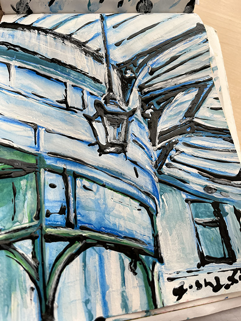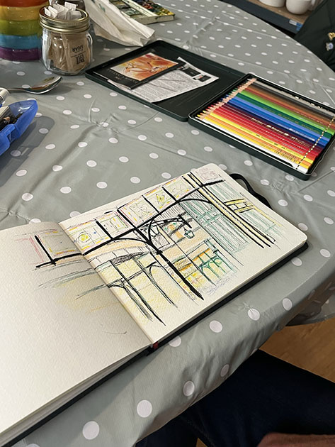 Overall, it was a great experience to join the Ribble Urban Sketchers Group and create art together. The community was welcoming and supportive, and it was inspiring to see the variety of styles and techniques everyone brought to the table. I’m grateful for the opportunity to experiment with new media and techniques, and I’m looking forward to exploring more possibilities in the future and sketching with the group again.