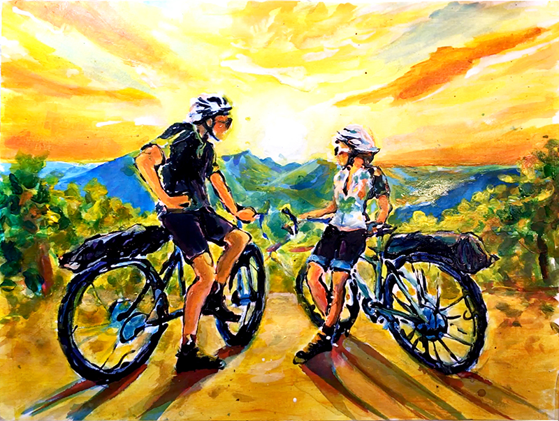 cycling-couple-looking-at-sunset-vinnyards-france